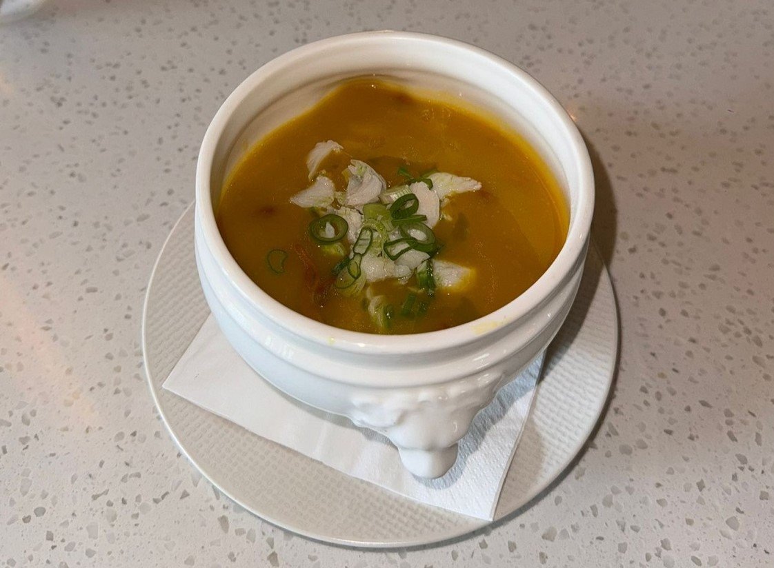 Golden Pumpkin Seafood Soup (+$3): A luxurious bowl of blue swimmer crab and fish maw. It symbolizes a wish for wealth and nourishment.